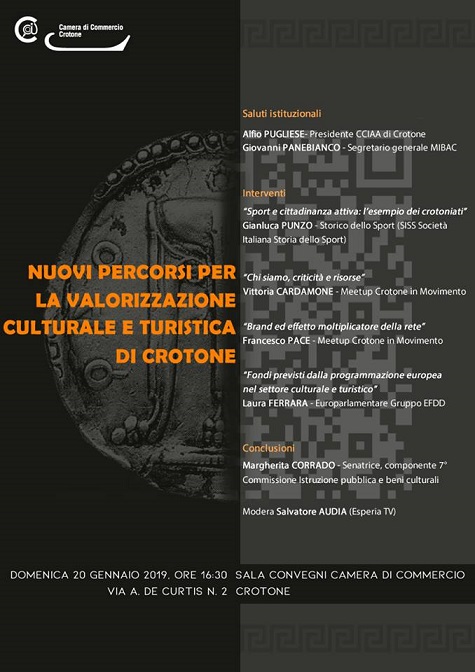 Domenica 20 gennaio 2019, ore 16:30, Sala convegni Camera di Commercio di Crotone, via A. De Curtis n. 2