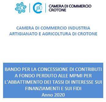 In considerazione dell’emergenza sanitaria da Covid-19 in corso e con l’obiettivo di supportare le imprese del territorio, la Camera di Commercio di Crotone istituisce un contributo a fondo perduto alle MPMI della provincia di Crotone per l’abbattimento del tasso d’interesse sui finanziamenti e sui fidi bancari finalizzati a favorire gli investimenti produttivi e la liquidità necessaria per la gestione aziendale in una fase economica di estrema criticità.