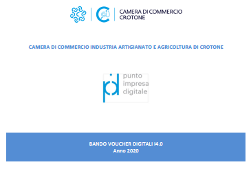 La Camera di Commercio di Crotone, ha approvato l'iniziativa "Bando voucher digitali I4.0-Anno 2020", al fine di promuovere la diffusione della cultura e della pratica digitale nelle micro, piccole e medie imprese (MPMI), di tutti i settori economici.
