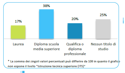 Infine in base al titolo di studio al 17% dei nuovi assunti verrà richiesta la laurea; al 38% il diploma scuola media superiore; al 20% dei casi la qualifica o diploma professionale mentre la scuola dell’obbligo verrà richiesta solo nel 25% delle nuove assunzioni.